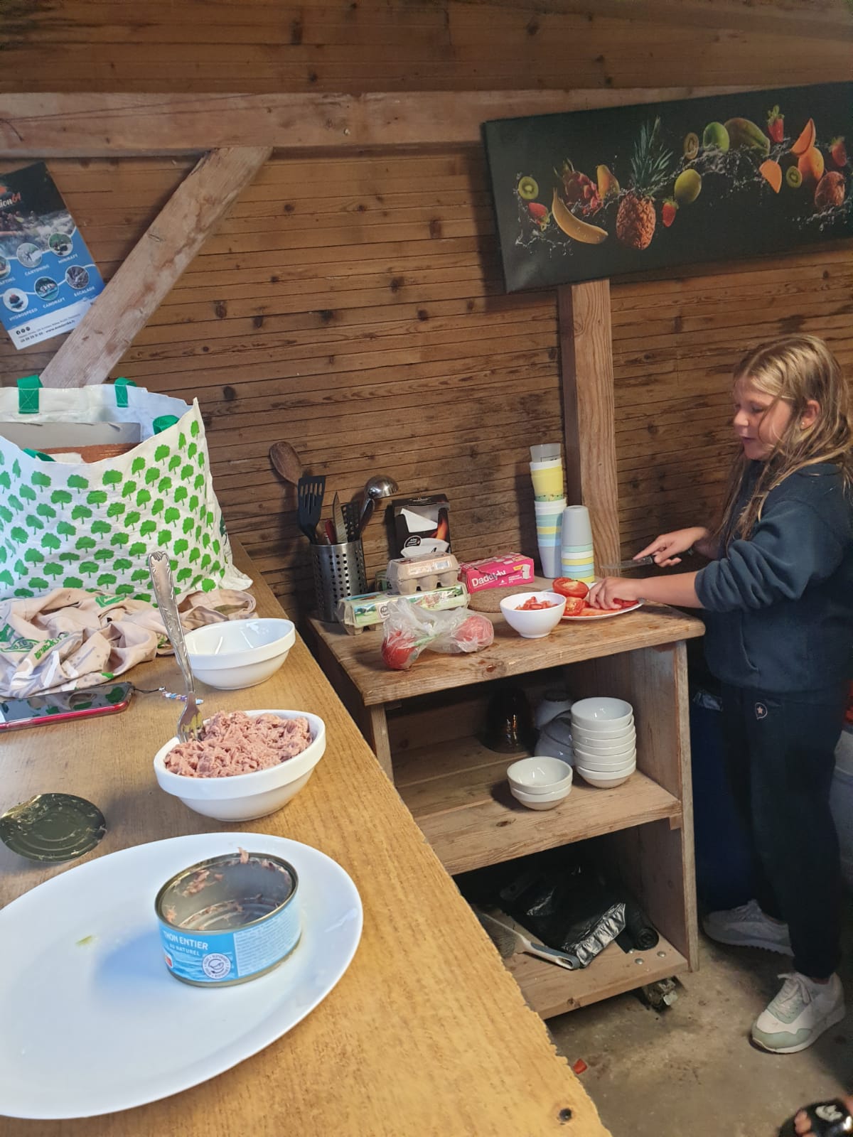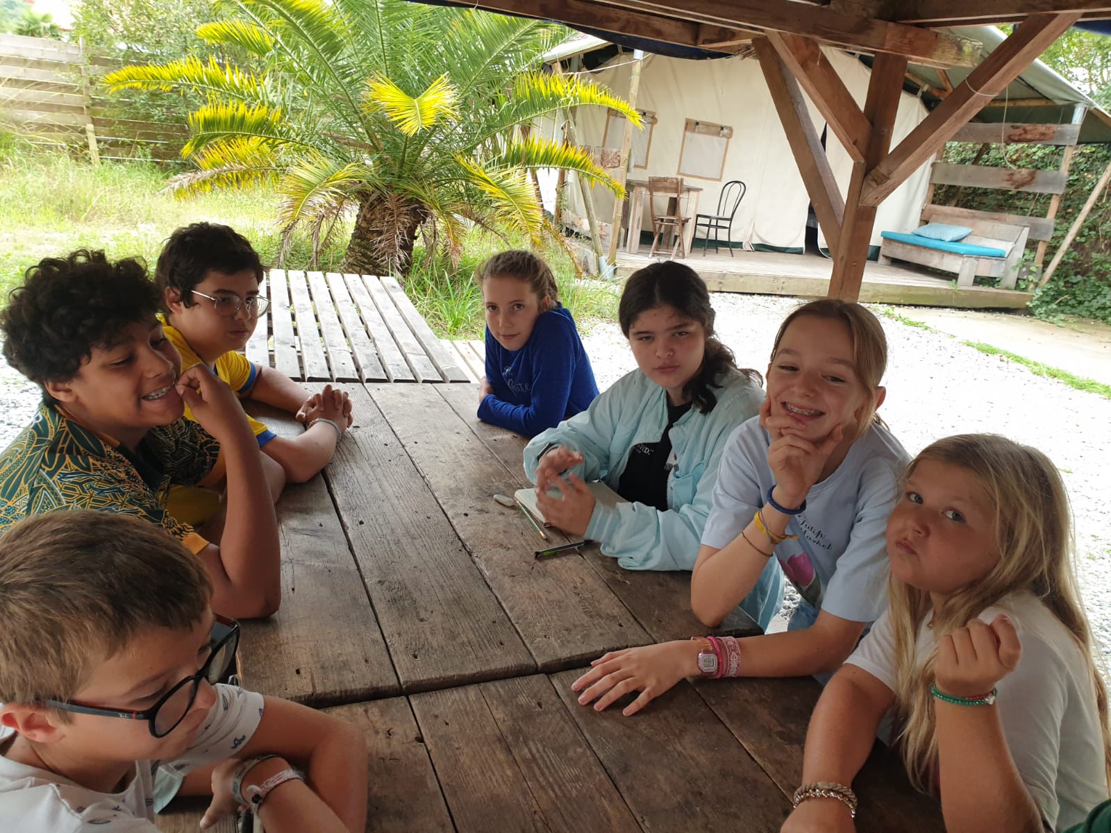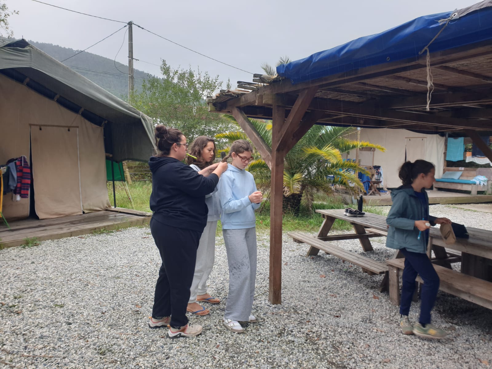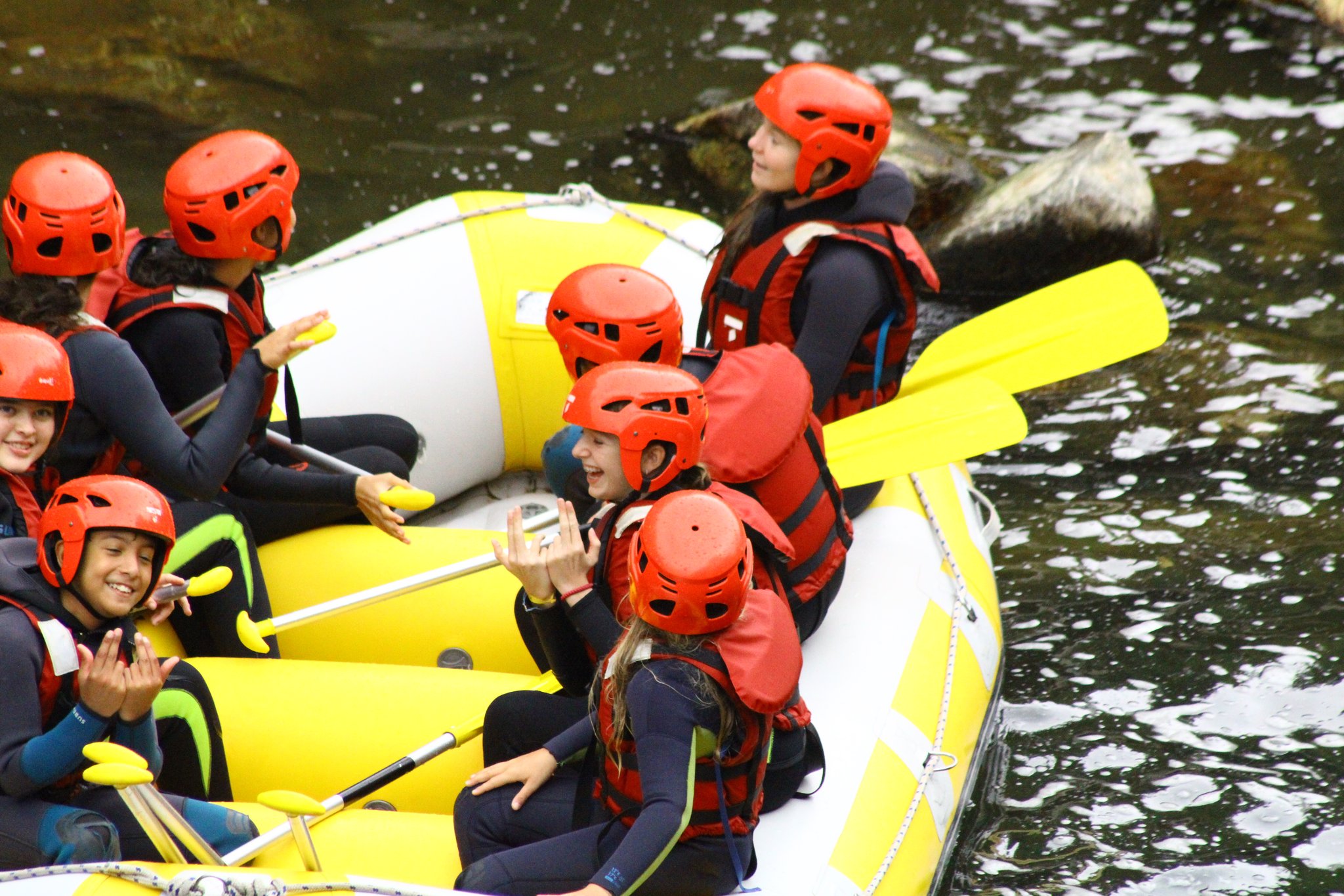 Nous sommes arrivés vers 11 heures ce matin au Camp de l’Évasion 64. Après nous être installés, nous avons enchaîné directement avec une session de rafting ! Ensuite, douche pour tout le monde, puis préparation du repas : salade de pâtes et salade de fruits. La météo n’étant pas clémente, nous n’avons pas pu nous rendre aux fêtes d’Itxassou. Au programme à la place : une séance de cinéma sous tente avec le film « Un petit truc en plus » !