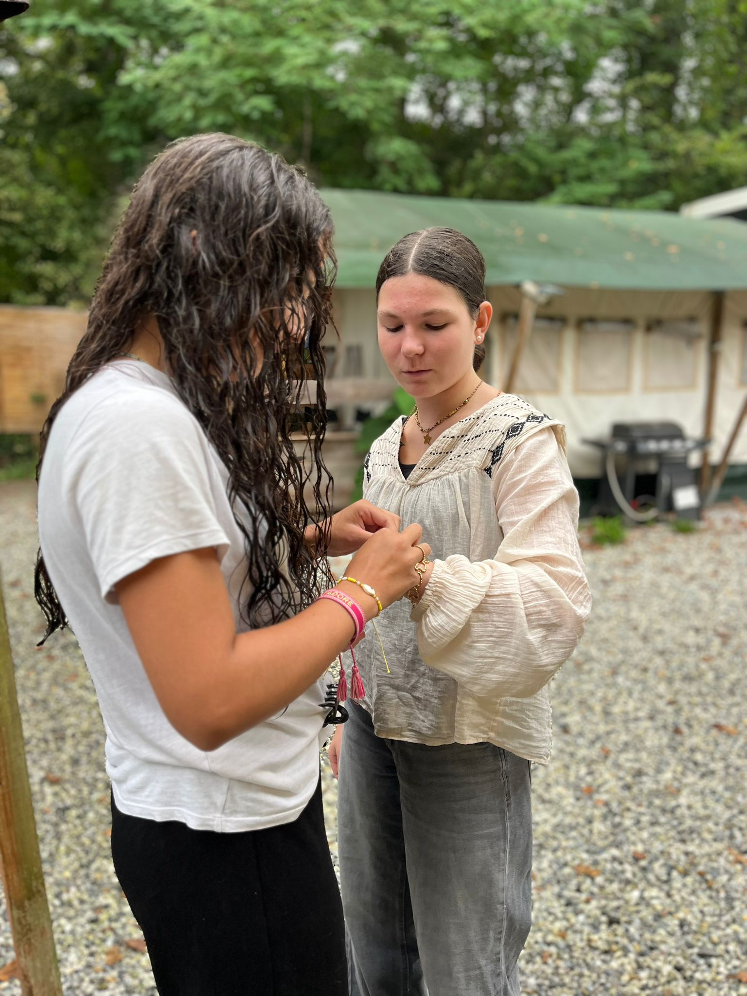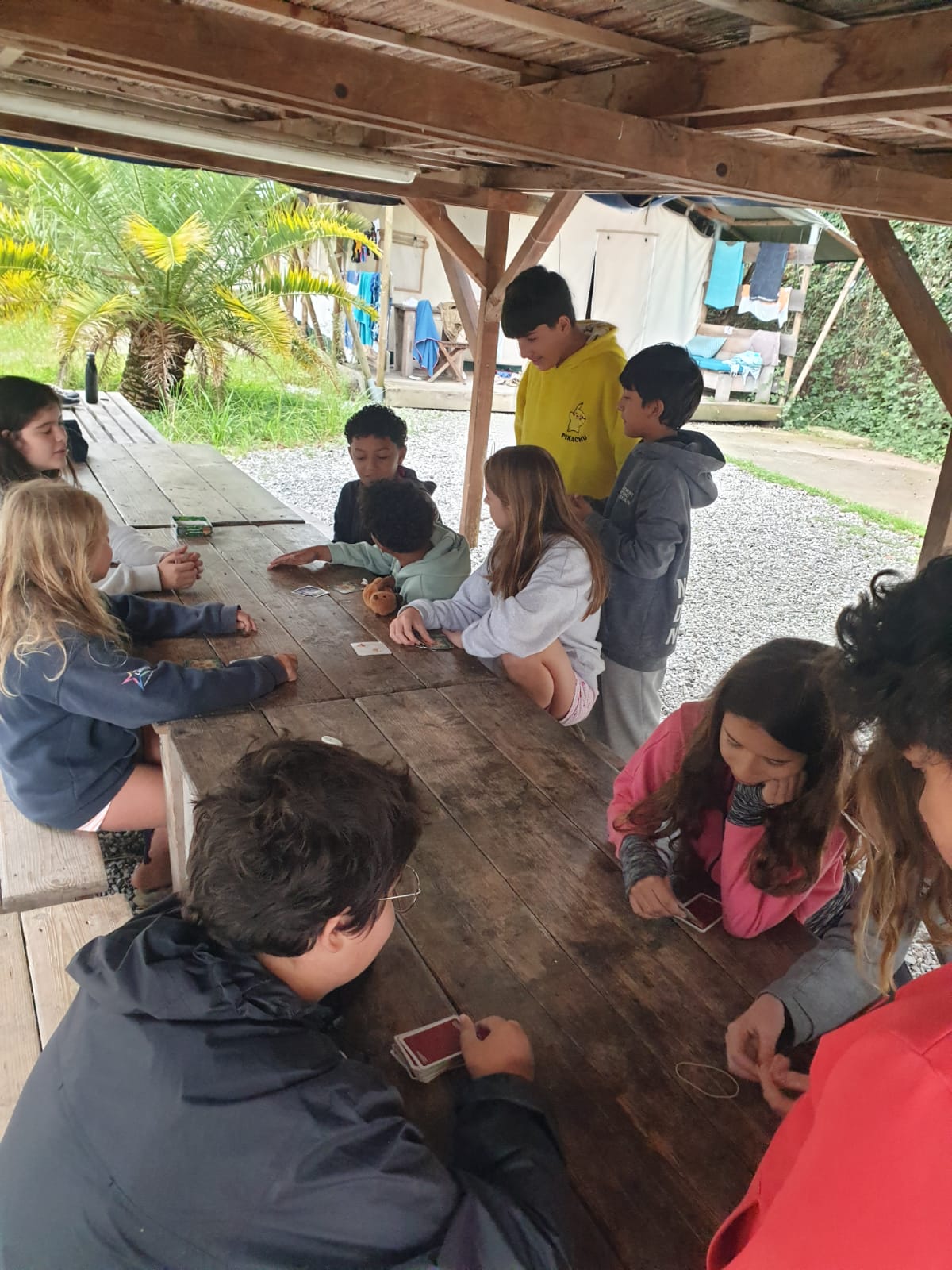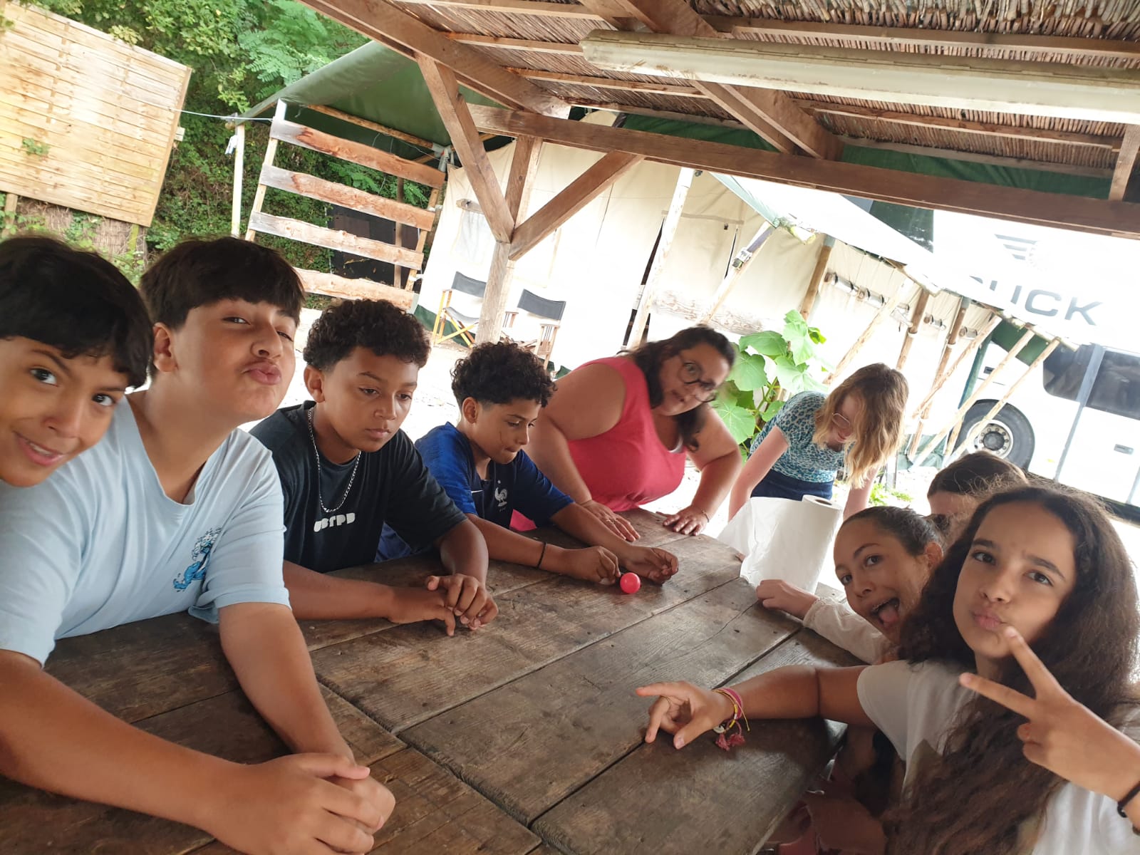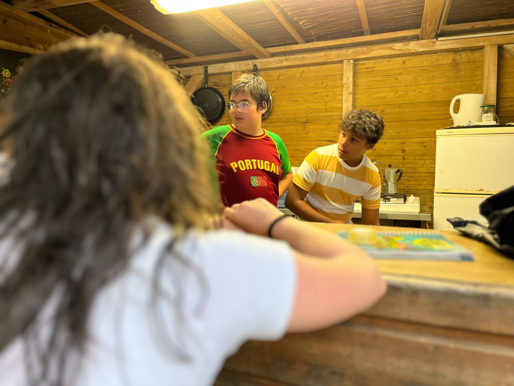 Nous sommes arrivés vers 11 heures ce matin au Camp de l’Évasion 64. Après nous être installés, nous avons enchaîné directement avec une session de rafting ! Ensuite, douche pour tout le monde, puis préparation du repas : salade de pâtes et salade de fruits. La météo n’étant pas clémente, nous n’avons pas pu nous rendre aux fêtes d’Itxassou. Au programme à la place : une séance de cinéma sous tente avec le film « Un petit truc en plus » !