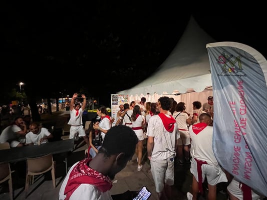 Chaque année, des jeunes âgés de 18 à 25 ans sont recrutés par la MVC pour animer le point repos du jardin Léon Bonnat. L’objectif est d’offrir un lieu où les festayres peuvent se reposer et vérifier leur alcoolémie avant de reprendre le volant. Cette initiative est soutenue par la mairie de Bayonne ainsi que par la Macif, grâce à l’implication de ses bénévoles. Depuis deux ans déjà, notre nouveau partenaire Ethyl’ia nous donne accès à son matériel et à sa plateforme, ce qui nous permet de comptabiliser les tests d’alcoolémie et d’en tirer des statistiques.