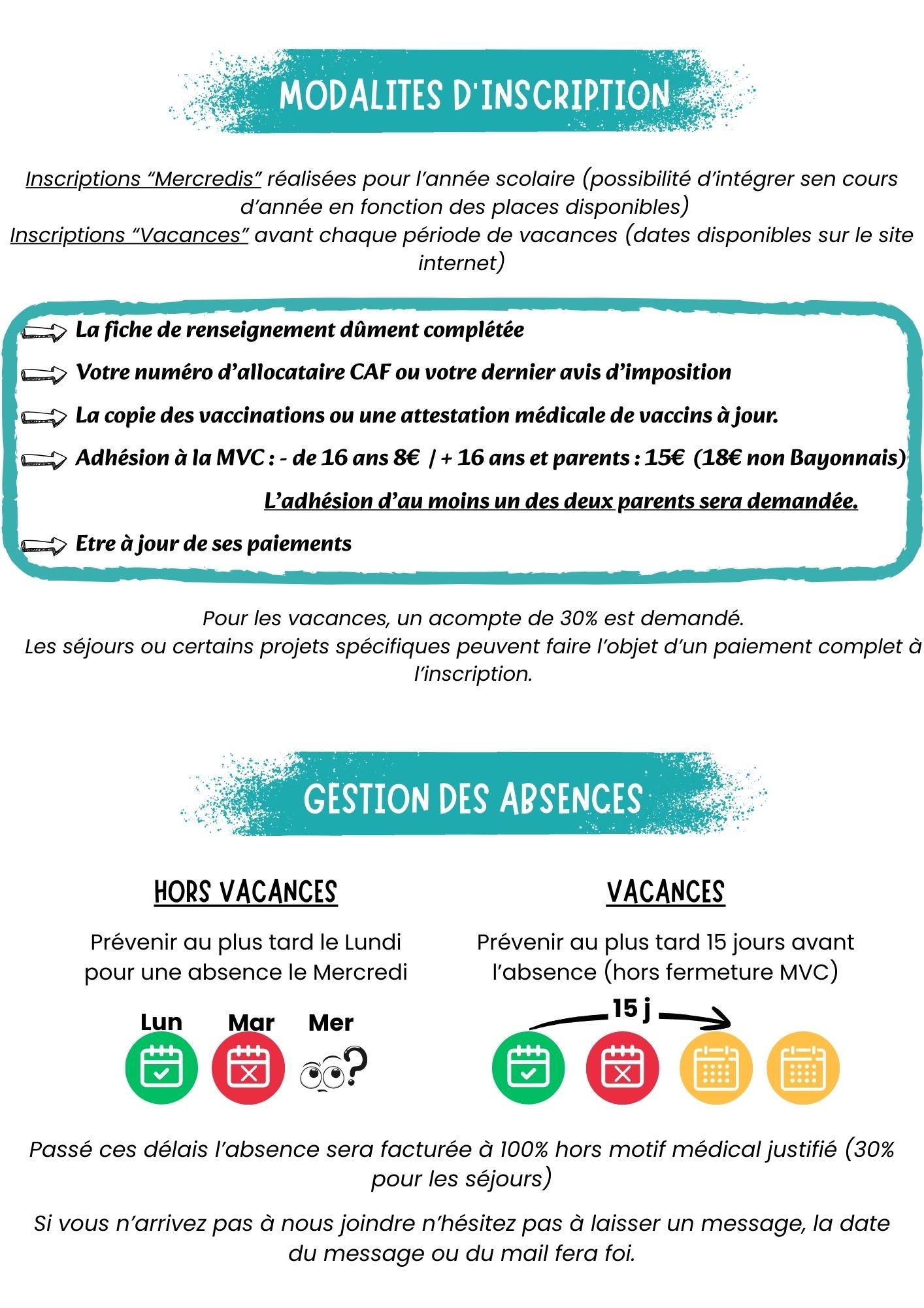 HORAIRES DES INSCRIPTIONS