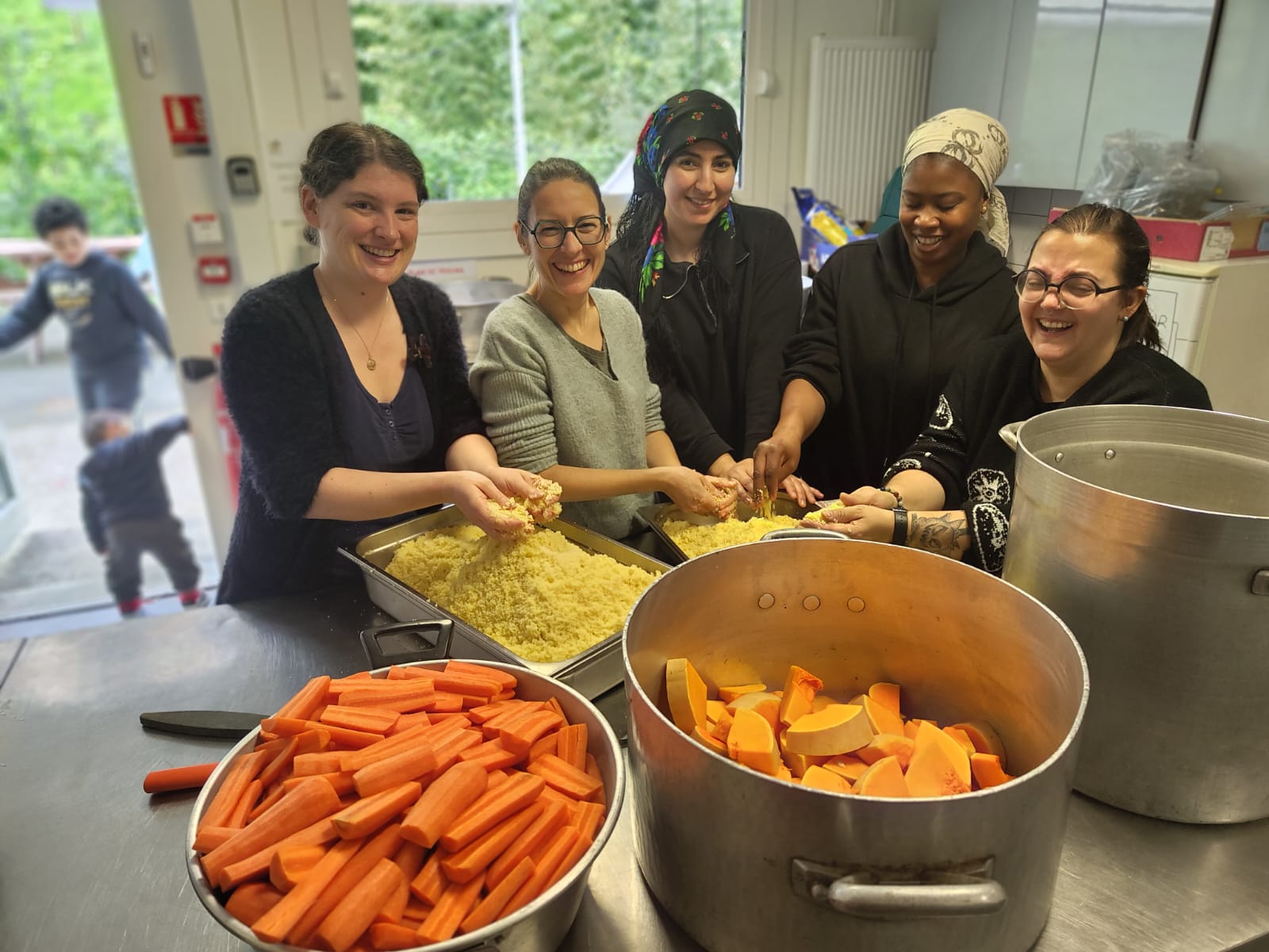 Certains s’occupent des enfants pendant que les autres participent à des ateliers autour du bien être.